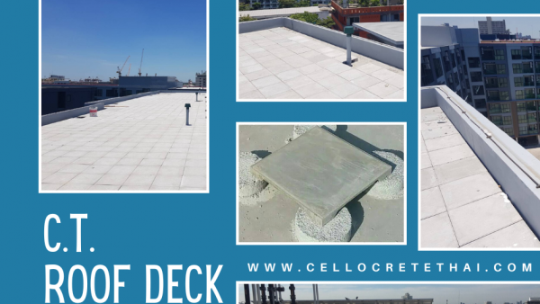 กระเบื้องปูพื้นดาดฟ้าซีที กระเบื้องปูพื้นดาดฟ้าซีที เหมาะสำหรับอาคารที่มีหลังคาslab ตัวกระเบื้องจะช่วยกันความร้อนจากชั้นดาดฟ้าไม่ให้ถ่ายเทลงไปยังอาคารด้านล่างซึ่งทำให้ช่วยประหยัดพลังงานจากการใช้เครื่องปรับอากาศ นอกจากนั้นยังได้ของแถมเป็นการยืดระบบกันซึมของท่านให้ยาวนานยิ่งขึ้น เพราะแผ่นกระเบื้องจะช่วยลดการหดขยายของอาคารที่โดนแดดเลีย ทำให้อาการแตกร้าวของดาดฟ้าลดน้อยลง ติดตั้งง่ายช่างทั่วไปก็สามารถทำได้