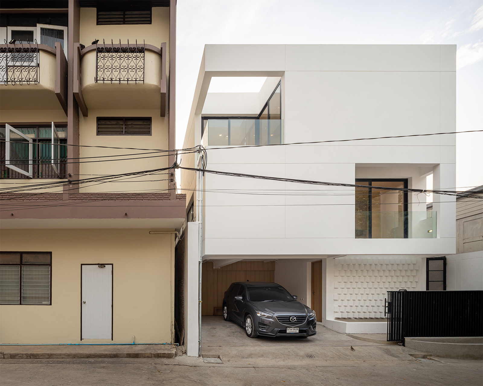 การจัดการกับพื้นที่ขนาดเล็กคือสิ่งแรกที่ได้รับการจัดการ หลักจากถูกกฏหมายถอยร่นของอาคาร ทั้งการถอยร่นรอบข้างและด้านหน้าของบ้าน ทำให้ความต้องการเบื้องต้นต้องถูกปรับเปลี่ยน และจัดเรียงความสำคัญเพื่อการเข้าถึงที่เหมาะสมตลอดทั้งสามชั้นของบ้าน