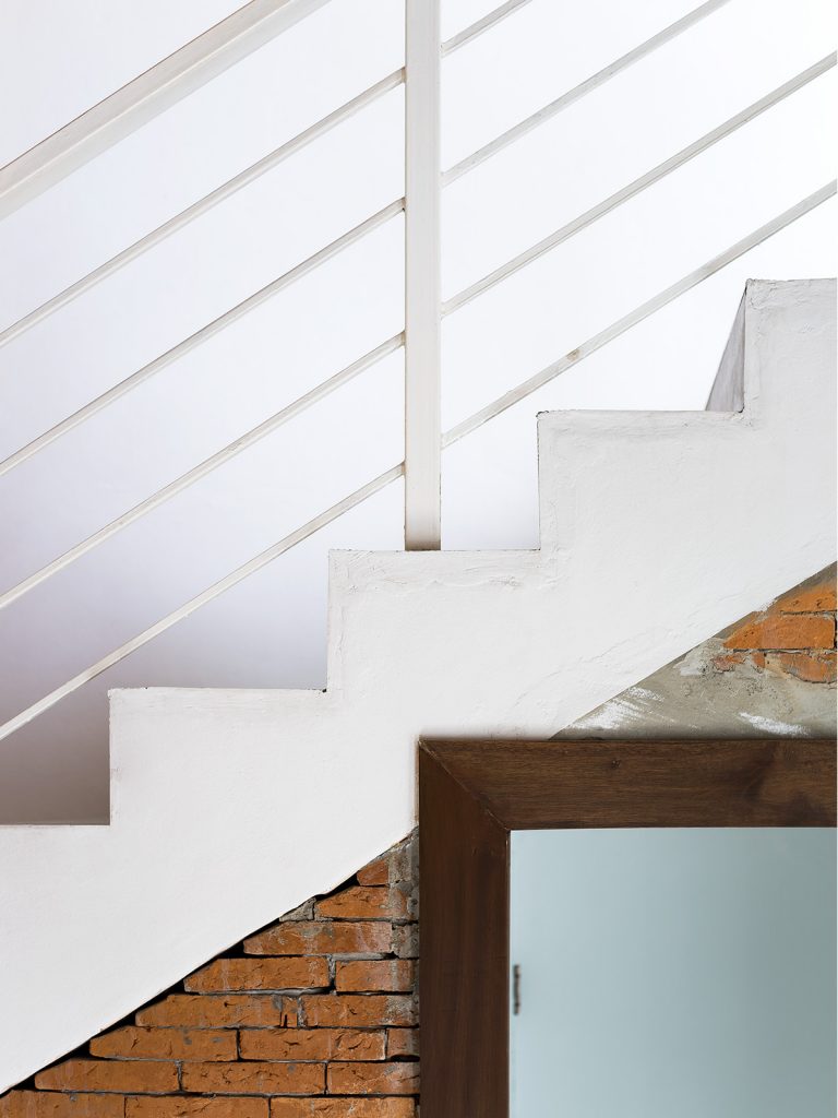 เดิมทีที่นี่เป็นหอพัก ซึ่งต้องการรีโนเวทให้เป็น Service Apartment โจทย์คือการออกแบบฟังก์ชั่นใหม่บนพื้นที่เดิมให้มีการใช้งานที่แตกต่างกัน สถาปนิกจึงแตกยอดความคิดจนได้คอนเซ็ปต์ คือ The Rhythm of Contrast ใช้การผสมผสานระหว่างของเก่าและของใหม่ เริ่มจากตัวอาคารด้านหน้าก่อด้วยอิฐทั้งเก่าและใหม่ ดีไซน์ให้มีเคิร์ฟโค้งมนบริเวณก่อนถึงประตูทางเข้า โดยเรียงอิฐสลับให้มีเทคเจอร์ที่ต่างกันบางส่วนกรุให้เป็นช่อง เพื่อให้กำแพงโค้งมีมิติขึ้นยามแสงลอดผ่านทั้งกลางวันและแสงไฟในตอนกลางคืน