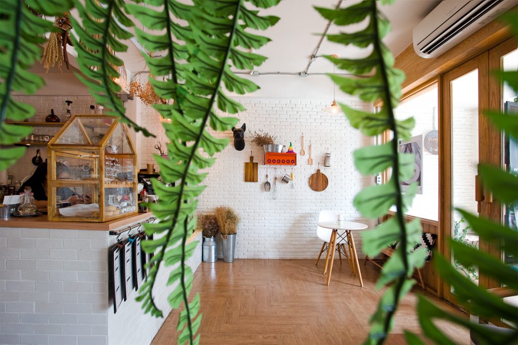 ทางด้านการตกแต่งของร้านนี้ทางคุณแพรได้นำความชื่นชอบในเรื่องของไม้ เฟอร์นิเจอร์ไม้ มาจับคู่กับผนังปูน ผสมกับอิฐมอญ และตกแต่งด้วยต้นไม้สีเขียว ทำให้บรรยากาศในร้านดูอบอุ่น และเป็นกันเอง