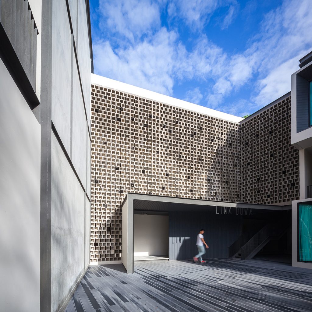 แสงและเงาที่ลอดผ่านอิฐช่องลมที่จัดเรียงอย่างได้จังหวะจะโคน บนผนังของช่องทางเดินรอบอาคาร สร้างความรับรู้ที่แปลกใหม่ให้แก่ทางเดินรอบอาคาร แสงแดดที่ลอดผ่านถูกกรองด้วยองศาของอิฐช่องลม ลดความจ้าจากแสงแดดก่อนที่จะตกกระทบโดยตรงต่อผิวอาคาร ในขณะที่ยังได้ความสว่างจากแสงที่สะท้อนไปมาภายในบริเวณทางเดินอย่างเต็มที่ ริ้วของแสงที่เปลี่ยนแปลงอยู่ตลอดตามช่วงเวลา เติมชีวิตให้กับอาคารอย่างเป็นธรรมชาติ มอบประสบการณ์ให้กับผู้อยู่อาศัยอย่างไม่ซ้ำกันทั้งขาไปและขากลับ นอกจากนั้น Façade ที่เกิดขึ้นจากอิฐช่องลม ยังได้มอบพื้นผิวที่แปลกตาชวนมองและให้ความสงบที่เกิดจากวัสดุเรียบง่ายอย่างคอนกรีตไปในเวลาเดียวกัน