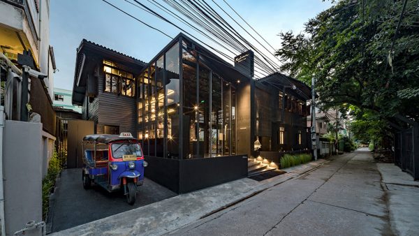 โฮสเทลดีไซน์เท่ สีเข้มขรึมทั้งหลังที่ผสมผสานความเป็นเรือนไม้ กับโถงกระจกใสของลอบบี้ในแบบ contemporary ที่เผยให้เห็นการตกแต่งที่แสนอบอุ่นของเคลิ้มโฮสเทลซึ่งซุกตัวอยู่ในอ้อมกอดของชุมชนเพชรบุรีซอย 5 ซอยที่เงียบสงบ ร่มรื่นและแสนจะมีเสน่ห์