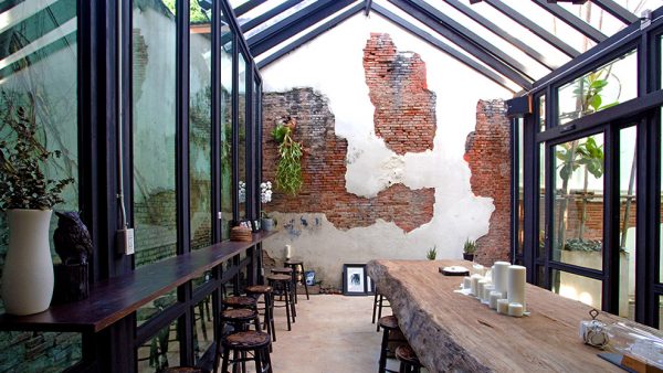 เดิมทีพื้นที่นี้เป็นโกดังเก็บของและเจ้าของเกิดไอเดียให้รื้อออก ทำเป็นเรือนกระจกครอบพื้นที่ เพื่อทำเป็นร้านกาแฟ โดยงานออกแบบทั้งหมด คุณป๊อก-สุขสันต์ เอื้ออารีชน เป็นผู้ดีไซน์และได้ทาง Bangkok Manifesto มาออกแบบ
