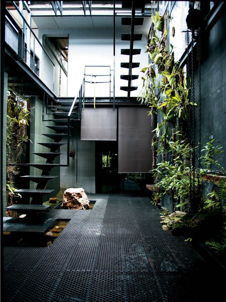 “แนวคิดของผมคือ การนำธรรมชาติเข้ามาสู่ภายใน กับขนาดของอาคารเหมาะกับตัวผม คือพอดีๆ กับชีวิตและการทำงาน เพราะบ้านเราเป็นเมืองร้อนชื้น ผมจึงเปิดพื้นที่ให้โล่งมากที่สุด จากนั้นก็สร้างธรรมชาติขึ้นมา มีน้ำ ปลา ต้นไม้”